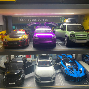 새-모형차 미니카1:24 , 아크릴+고급원목주차장6자리