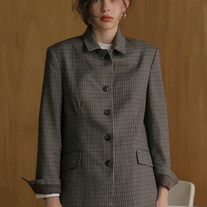 미착용) 이에엣드맹 체크 빈티지 브라운 싱글자켓 가을