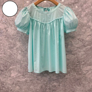 js뉴욕 민트 뒷리본 셔링 퍼프 블라우스 반팔 여름
